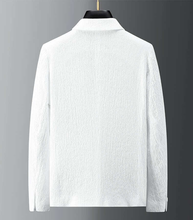The blazer is designed with notch lapels and intricate stitch detail, lending a contemporary edge to the classic tailored silhouette.