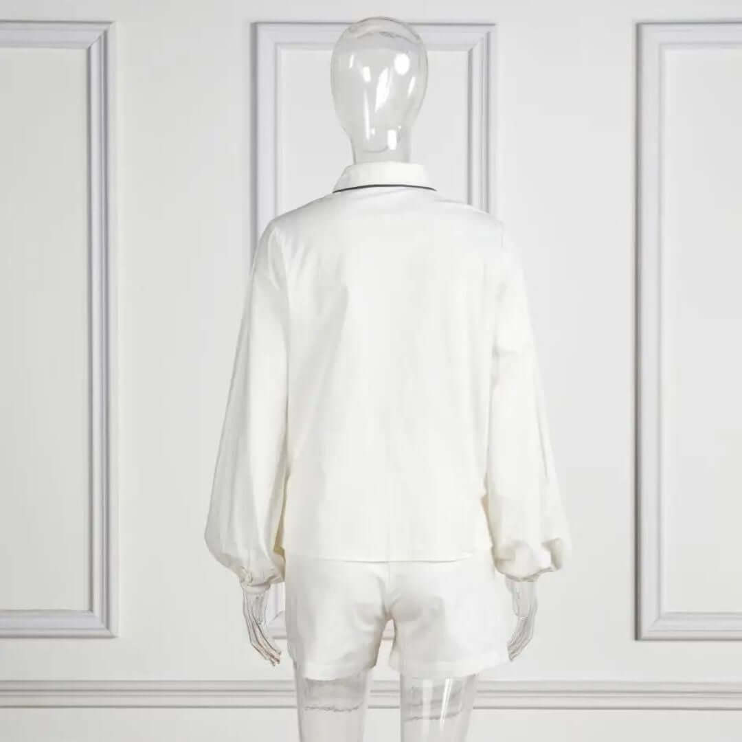 Discover the epitome of clean elegance with this Vera - Elegant shirt and shorts set. The ensemble presents a fresh take on the classic white look with an elegant shirt with eye-catching pockets and sharp collar, teamed with chic high waisted shorts.