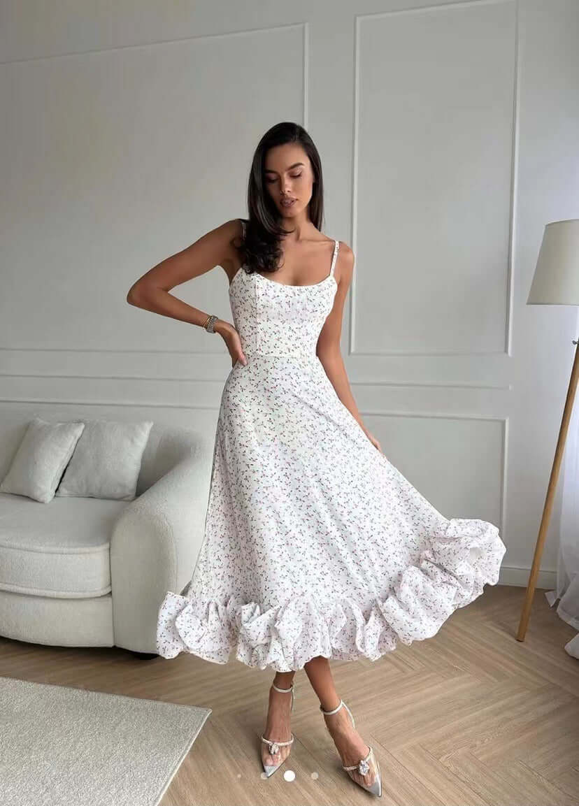 - Style: Vintage, Bustier, Midi length, A-line, Strappy sleeveless, 3D floral embellishments