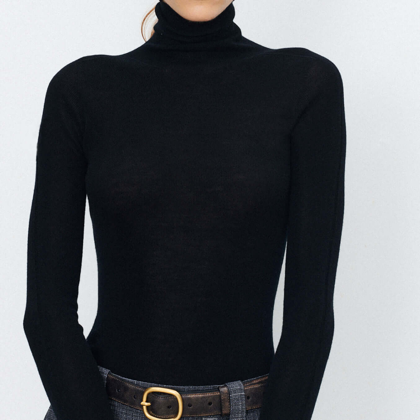 Elevate your style with our Plain-coloured long-sleeved knitted top with high neckline. Crafted for comfort and versatility, this chic piece effortlessly transitions from day to night. Soft knit fabric and a timeless design make it a wardrobe essential for any occasion.